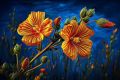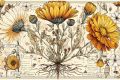 Vintage Botanical Illustration of Beautiful Blooming Flowers on Canvas