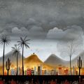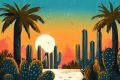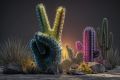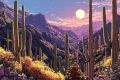 Surreal Desert Landscape with Cactus: Abstract Art Representation