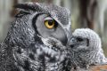 Tender Moments Between a Great Grey Owl and Its Chick