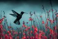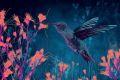 Vibrant Hummingbird Amidst Neon Florals: A Striking Canvas Print