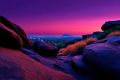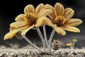 Surreal Desert Beauty: Radiant Flowers Amidst Rocky Terrain