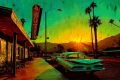 Vintage Car and Motel Sign under a Sunset in Mesa, Arizona