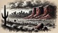 Evocative Ink Wash Interpretation of Red Mountain Park, Arizona