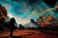 Surreal Trek through Mesa's Mythic Landscape Under Cosmic Lights