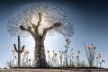 Ethereal Desert Garden: Artistic Lines and Monochromatic Tones