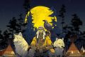 Serene Twilight: Tribal Elder and Wolves Under a Gigantic Moon