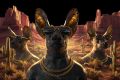 Surreal Desert Kings: Stylish Dogs in Mesa's Majestic Landscape