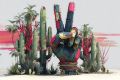 Mysterious Desert Wanderer Beside Cacti and Desert Flora
