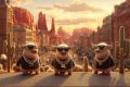Playful Trio of Stylish Cartoon Buffaloes with Golden Accessories