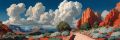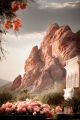 Enchanting Mesa Landscape with Crimson Rocks and Lush Gardens