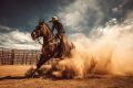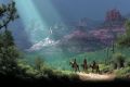 Sunlight Beams Over Horseback Riders in Majestic Mesa Landscape
