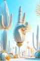 Surreal Desert Wonderland: Metallic Cacti Under Azure Skies