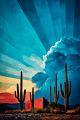 Vibrant Mesa Arizona Sunset with Majestic Cacti and Dynamic Skies
