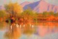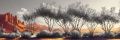 Autumn Blaze: Vibrant Red Trees Against a Pastel Sky in Mesa