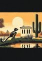 Stylized Desert Runner: A Lizard Artwork Amidst Mountain Background