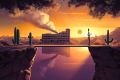 Surreal Mesa Landscape: Fusion of Urban Structures and Nature