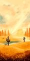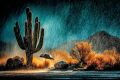 Vibrant Interpretation of a Saguaro Cactus in Arizona's Desert Landscape