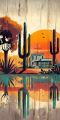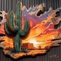 Vibrant Sunset and Saguaro Cactus on Metallic Canvas in Mesa, AZ