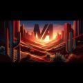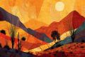 Stylized Sunset Over Mesa: A Striking Artistic Representation