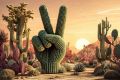 Surreal Desert Imagery: Giant Cactus Creature Under Arizona Skies