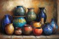 Colorful Array of Traditional Ceramic Pots in Artistic Display
