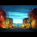 Night Illuminates Modern Architecture and Desert Flora in Mesa