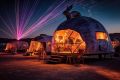 Enigmatic Desert Nightscape Featuring Vintage Streamline Trailers and Laser Show
