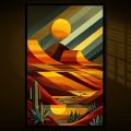 Majestic Desert Sunrise Over Whimsical Mosaic Cactus Art
