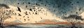 Serene Dusk: Birds Ascending Over Tranquil Mesa Landscape