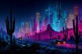 Neon Glow of Futuristic Mesa: A Surreal Desert Cityscape