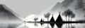 Monochromatic Serenity: Indigenous Tents by a Tranquil Lake